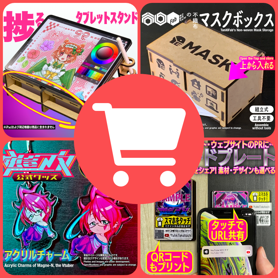 お絵かき&音ゲーが捗るタブレットスタンド「Engawa by 谷6Fab」や、Vtuber磁音エヌのグッズなどを取り扱っております。